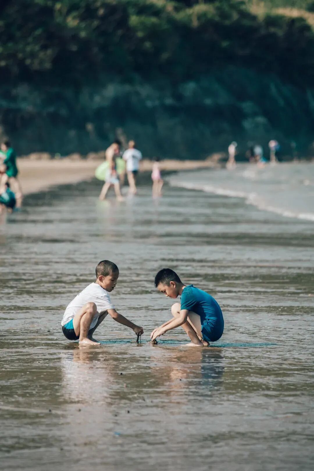 待潮水褪去,平坦又湿润的沙滩裸露出来