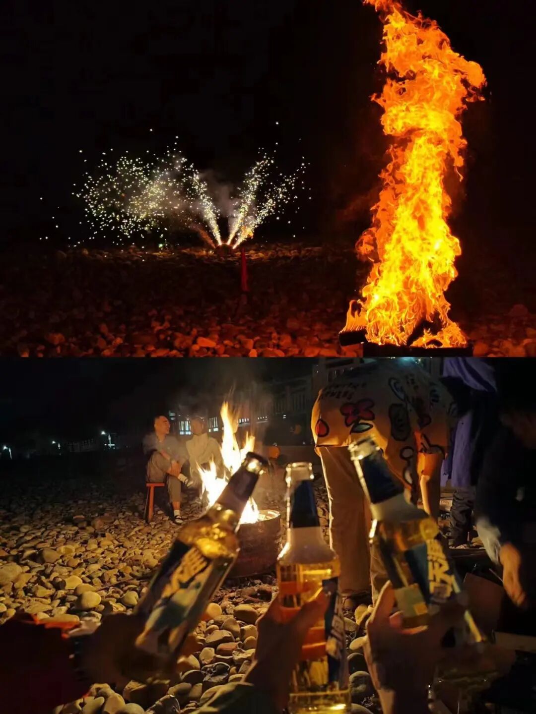 喝着啤酒,围着篝火肆意舞蹈